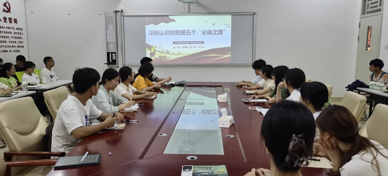 为深入学习贯彻习近平新时代中国特色社会主义思想主题教育,加强党性修养、坚定理想信念,5月30日上午,学生第一党支部书记师沛凌志讲授《深刻认识“五个必由之路”》专题党课。学生第一党支部党员、22级学生干部代表参加了本次会议。