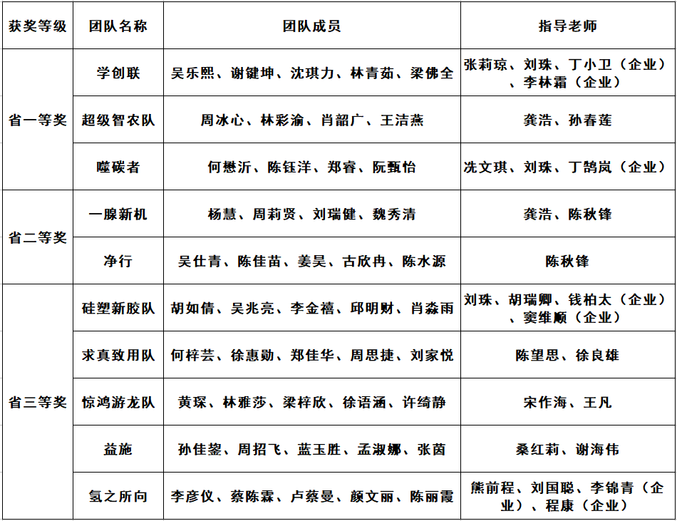 获奖团队信息汇总表