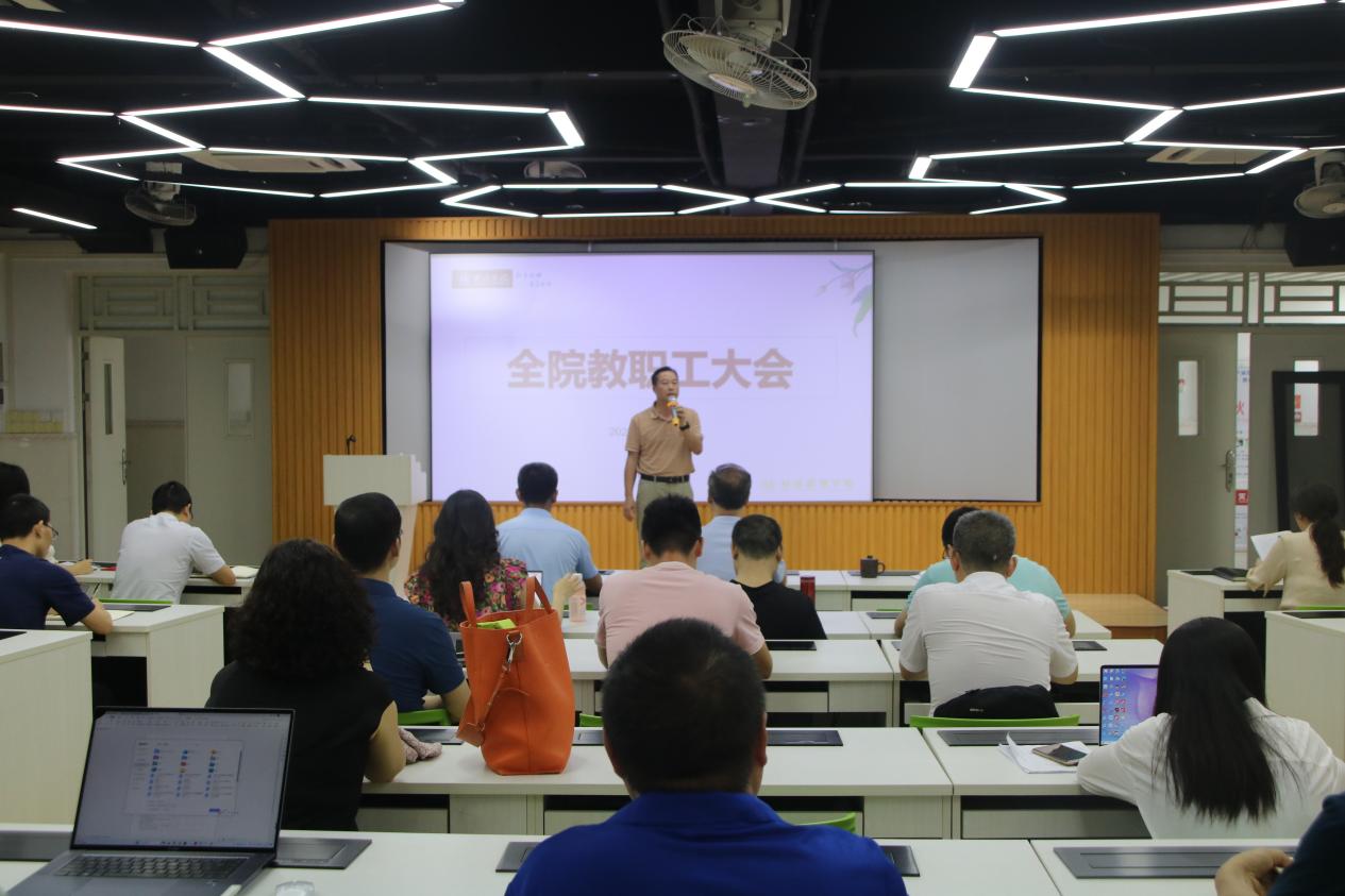 李普亮院长以“凝心聚力再出发,谱写经管新篇章”为主题做工作报告。他重点从办学目标、办学理念、办学特色、工作态度四个方面对经济管理学院办学定位进行顶层设计谋划,提出了“11442”(即一个引领、一条主线、四项重点任务、四个融合、两个保障)发展路径,同时对学院期末工作和暑期工作进行安排部署,要求经济管理学院全体教职员工凝心聚力、久久为功,在党建工作、人才培养、学科建设、专业建设、平台建设、社会服务等领域不断迈上新台阶。
