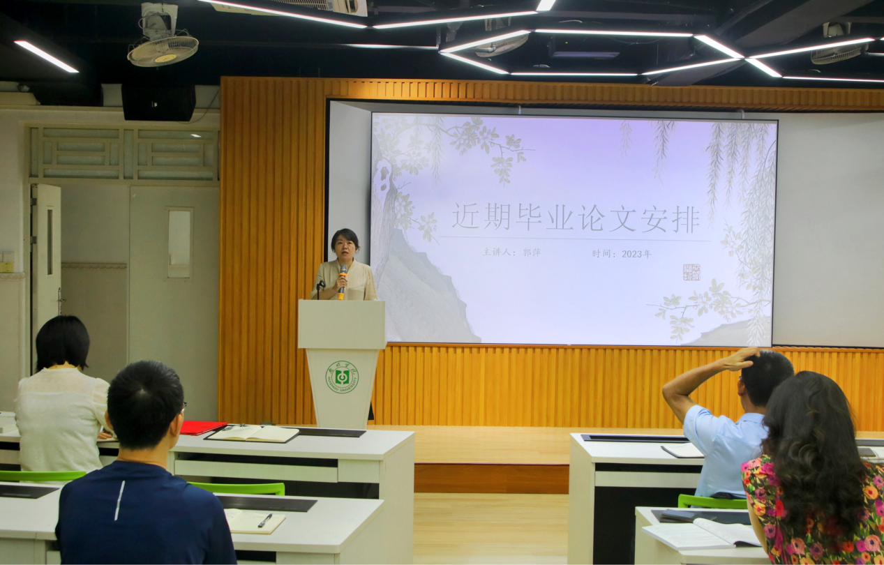 郭萍副院长就2023届毕业论文抽检及2024届毕业论文工作进行安排部署,要求各位专任教师需按照教育部发布的《本科毕业论文(设计)抽检办法(试行)》相关要求做实做细2023届毕业论文抽检工作,同时按照规定时间节点完成好2024届毕业论文各项工作。