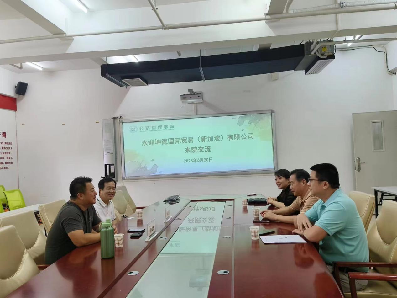 7月3日下午,坤德国际贸易(新加坡)有限公司金成杰总经理来我院开展校企合作交流,经济管理学院党总支书记郑良才、副院长郭萍、财务管理系主任袁祥勇参与座谈交流。