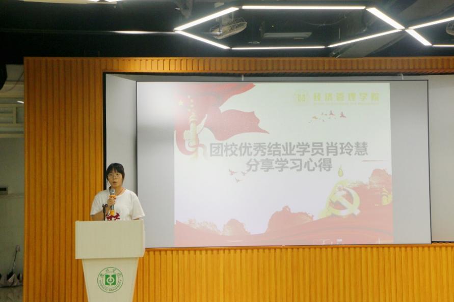 团校优秀学员肖玲慧分享学习心得。她表示,从最初对青马工程一无所知到现在收获颇多,在这段旅程中从懵懂迈向成熟,增强了思想认识,提高了实践水平。她认为,在团校的所学所获,一定会成为未来人生路上重要的一块奠基石,一步步走向成功。未来,她会努力成为一名“有理想、善学习、讲道德、敢吃苦、勇奋斗”的青年马克思主义者,用青春点亮未来,用才智成就理想。