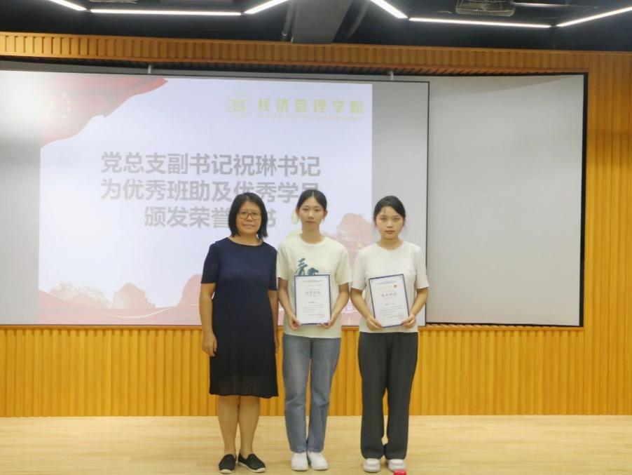 党支部副书记祝琳书记为优秀班助及优秀学员颁发荣誉证书