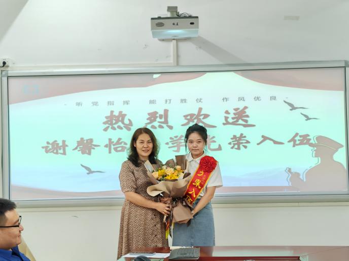 入伍学生代表谢馨怡同学表示,很荣幸能够应征入伍,感谢党和国家给的这一次机会,使自己有机会为国防现代化建设贡献自己的一份力量,同时也将处处严格要求自己,听从党的指挥,刻苦学习、锤炼本领,用实际行动向党和人民交上一份满意的答卷。