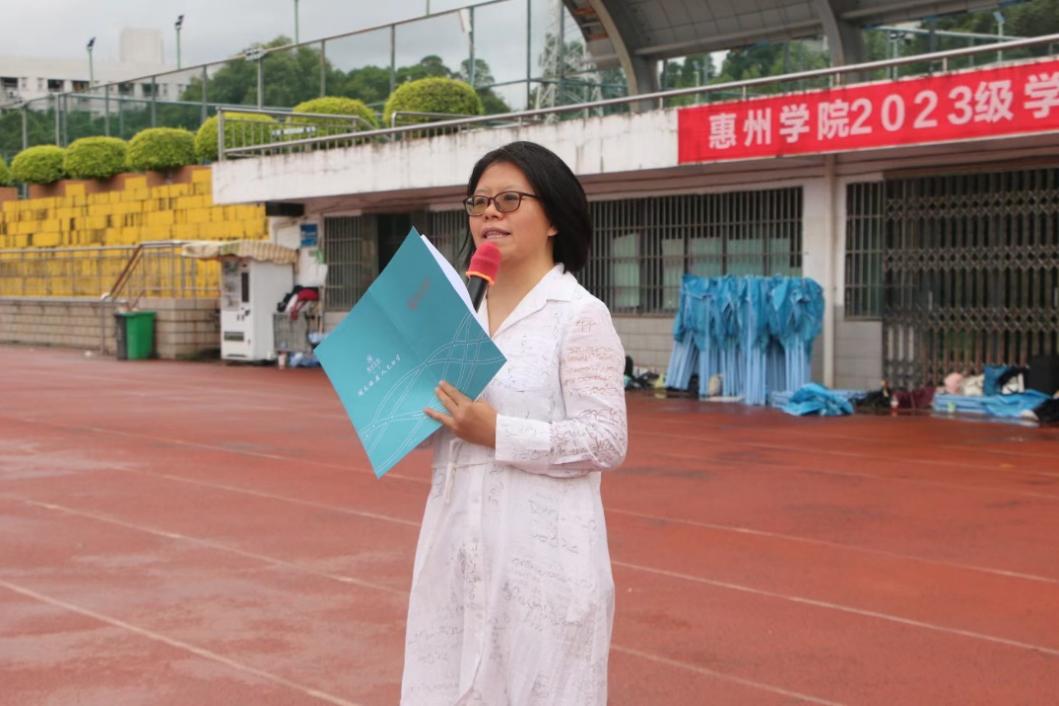党总支副书记祝琳作开训动员,她代表学院向参训的全体新生致以诚挚的问候,向全体教官表示热烈的欢迎与衷心的感谢。她指出大学生军训是一项有法可依、有章可循的光荣任务,是一次塑魂建魄、拓展的难得机会。她要求同学们端正态度听从指挥,磨练意志强健体魄,各项训练科目都要从严要求自己,掌握基本军事知识和技能,在军训中提高政治觉悟,激发爱国热情,增强国防观念和组织纪律性,养成良好的作风,为四年大学生活打下坚实的基础。