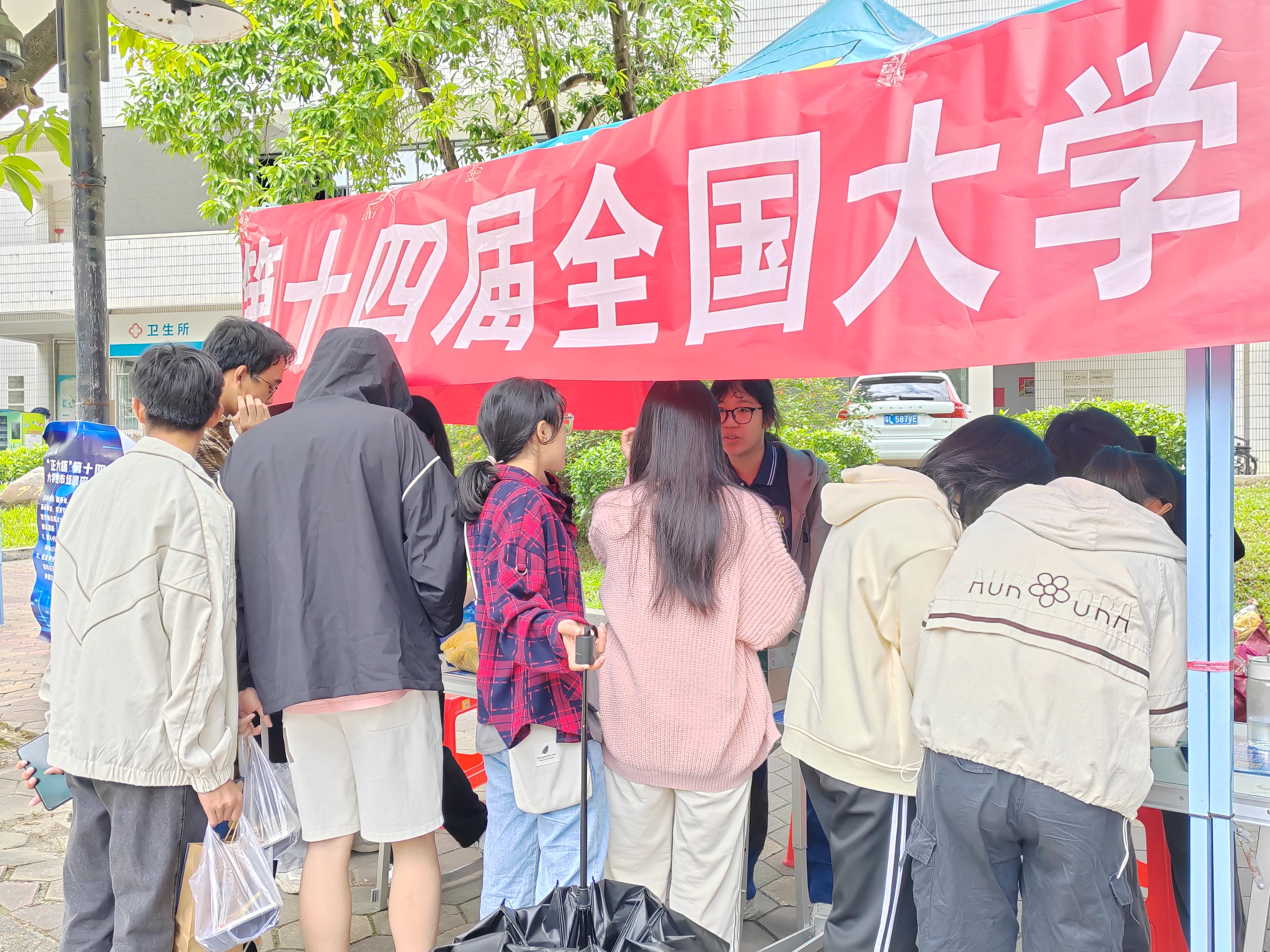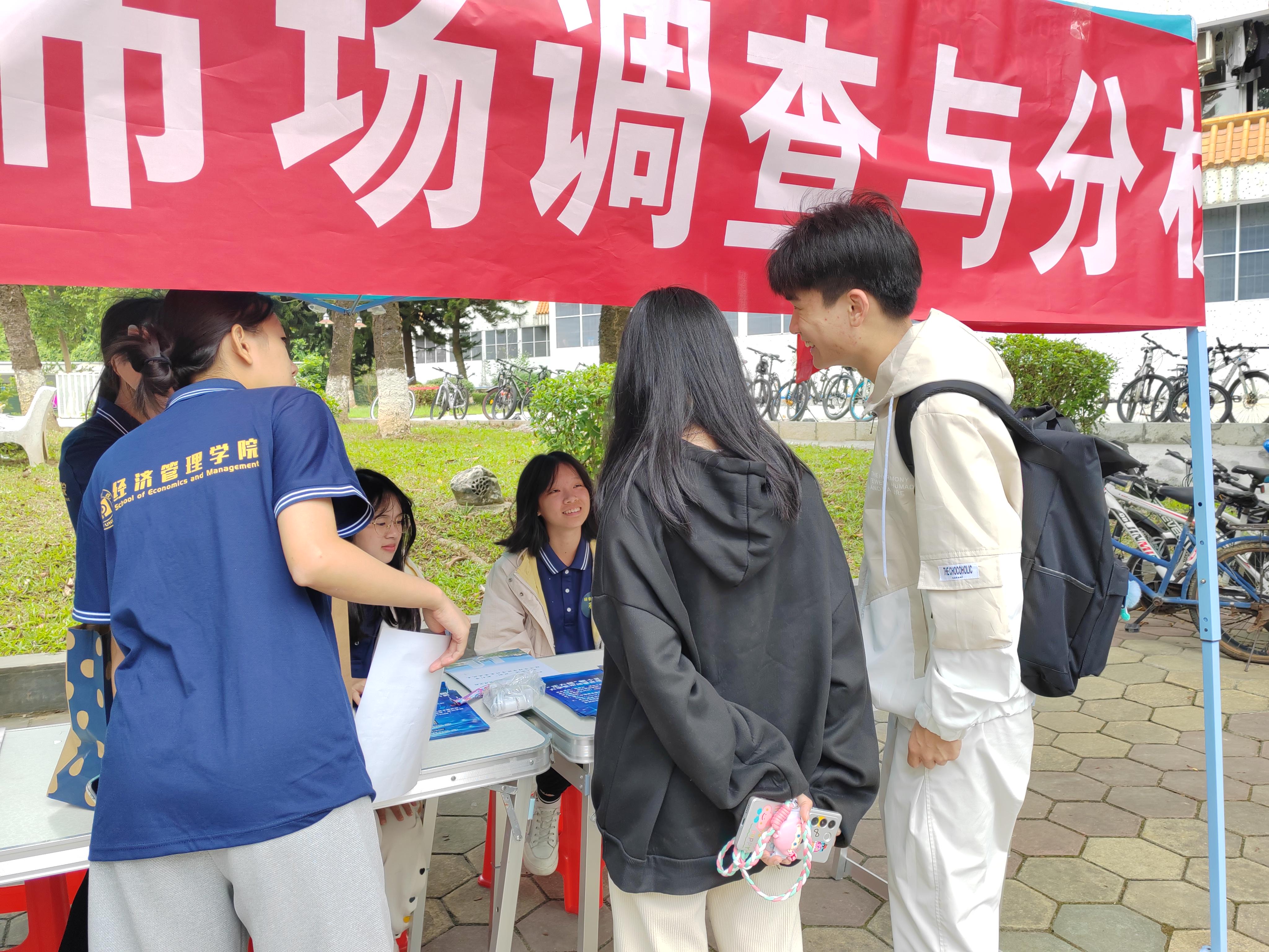 活动开始前一周,为吸引更多学生前来参与本次活动,科创中心以推文宣传、集赞兑换礼品等方式,大力宣传本次摆摊活动。活动当天上午十点,经济管理学院科创中心在少康楼楼下设立了宣传摊位。活动过程中,科创中心的工作人员耐心派发市调大赛宣传单,吸引路过的同学前来了解市调大赛相关内容,热情为前来咨询的同学答疑解惑,对比赛相关事项、各类流程细节作出了详细解答。