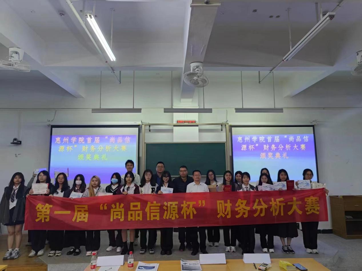 为提高学生专业知识应用能力,培养管理型财会人才,12月3日晚,由经济管理学院主办,惠州学院投资理财协会承办的第一届“尚品信源杯”财务分析大赛决赛在旭日楼107课室举行,活动得到惠州市尚品信源会计师事务所的大力支持。决赛的评委为惠州市尚品信源会计师事务所注册税务师文飞、审计学系主任熊明良老师、财务管理系主任袁祥勇老师,近100名学生来到决赛现场观赛。