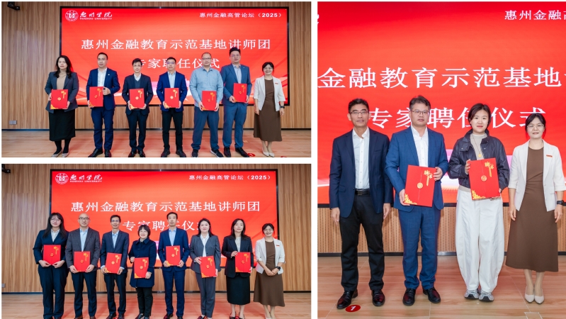 论坛还同时举行了惠州金融教育示范基地讲师团专家聘任仪式,副校长魏晓慧为专家颁发聘书。