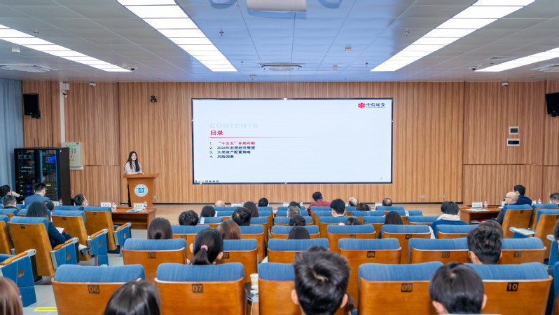 主题讲座环节,中信证券研究部史雨洁以“2026年宏观经济展望与大类资产配置分析”为题,从“十五五”开局机遇、2026年宏观经济走势、大类资产配置策略及潜在风险因素四个维度展开深度解析,为现场师生和行业人士带来了兼具理论高度与实践价值的分享。