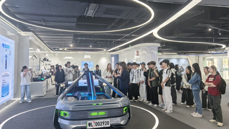 师生一行在人力资源校园招聘经理黄伟源的陪同下参观了德赛西威的数字化展厅。展厅大量采用动态数据可视化、交互触控屏、裸眼3D等技术,场景化展示了西威40年创新发展的历程、核心业务模块与先进产品,还有那面以“倔匠”为背景的专利墙,都让学生为之震撼并不断留恋拍照打卡。