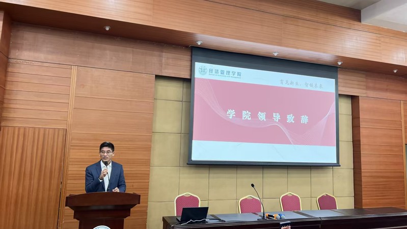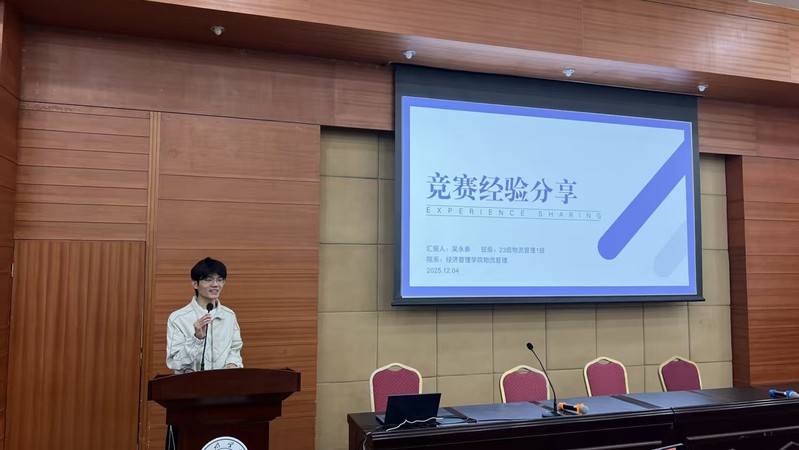 随后,大三年级优秀学生代表吴永泰以“竞赛经验分享”为主题,结合自身参与物流专业竞赛的经历,从备赛技巧、团队协作、能力提升等维度分享干货,为新生提供了可复制的成长参考。