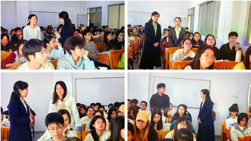 在现场互动环节,同学们结合自身专业背景与求职困惑积极提问,问题涵盖“国贸专业如何拓展跨境电商相关技能”“体制内面试综合分析题如何结合本土实践作答”“大三实习如何平衡专业与兴趣方向”等多个方面。江秋婷老师逐一耐心解答,结合具体案例给出建议,现场交流氛围浓厚。