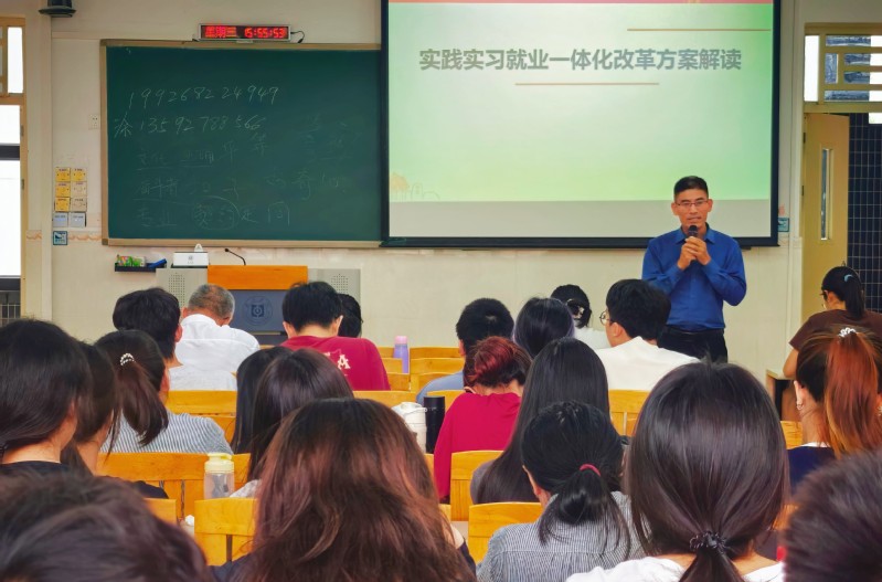 会议第三项议程,经济管理学院院长李普亮教授就物流管理专业实践实习就业一体化改革工作进行了系统解读。作为学校首批试点专业,物流管理专业率先将学生实践实习时长调整为一学年,推动实践教学深度融入人才培养全过程。李普亮强调,学院将以立德树人为根本,以提升学生实践能力、创新精神和就业竞争力为核心,构建“实践筑基—实习赋能—就业提质”一体化闭环育人通道。他进一步规划了下一步实践方向:一是深化与星海物流等企业的协同育人机制,拓展高质量实习就业基地;二是推动毕业论文“真题真做”,强化实习与毕业设计的有机衔接;三是完善全流程实习管理与指导,确保实习质量与就业转化成效。他鼓励23级物流管理专业学生抓住改革机遇,积极参与实习实践,提升职业素养与就业竞争力。