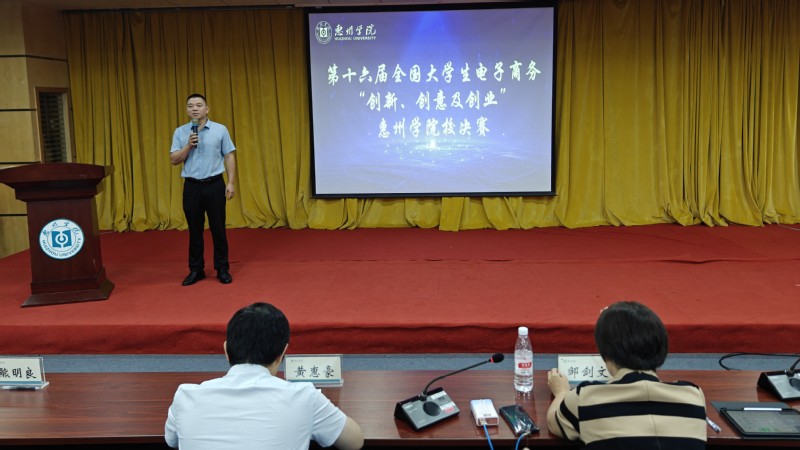 为深入推进“以赛促学、以赛促练、学赛结合”育人模式,着力培养大学生创新意识、创意思维、创业能力及团队协同实战精神,4月15日,我校第十六届全国大学生电子商务“创新、创意及创业”挑战赛(以下简称“三创赛”)校内总决赛顺利举办。本次赛事特邀全国大学生电子商务“创新、创意及创业”挑战赛广东省赛组委会秘书长邹剑文、惠州城市职业学院创新创业学院院长黄惠豪、惠州市惠城区信息协会执行会长邓铭钦担任评委,经济管理学院副院长熊明良及各二级学院200余名同学参加答辩会。