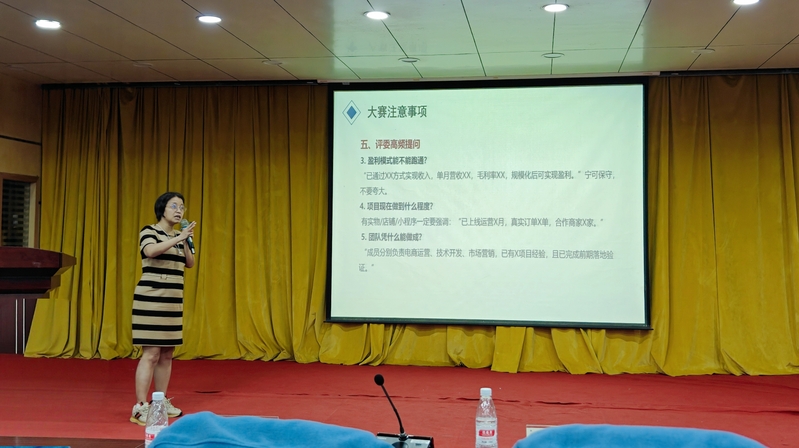 随后,邹剑文为参赛学子开展专项指导,围绕赛事规则、答辩要点、备赛方向展开深入解读,结合“创意、创新、创业”三大核心内涵,系统讲解了项目打磨、PPT优化、现场应答技巧等关键内容,为参赛团队明晰备赛思路、提升答辩水平提供了精准指导与有力支撑。